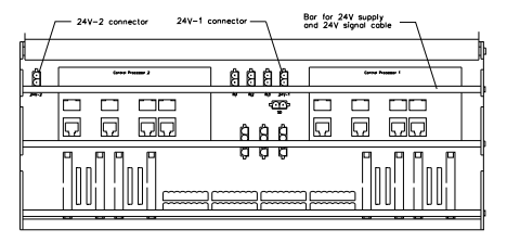 ชุดสายไฟจ่ายไฟ FS-PDC-CPSET ทำหน้าที่ส่งกำลังไฟฟ้าจากบัสบาร์ไฟหลัก 24 Vdc ชนิด FS-MB-0001 ไปยังตัวเครื่องควบคุม ชุดนี้ประกอบด้วยสายไฟ 2 เส้น เส้นละหนึ่งเส้นสำหรับตัวประมวลผลควบคุมแต่ละตัว สายไฟจะถูกเสียบเข้ากับขั้วต่อที่เหมาะสมบนแผงวงจรหลัก (24V-1 และ 24V-2)